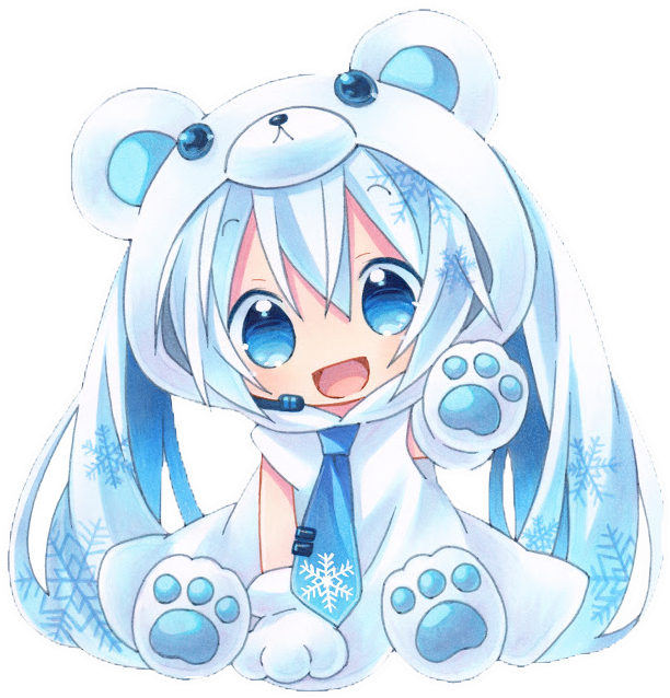 The cartoon image features a pretty anime girl with blue eyes, wearing a tie and a white tiger hat. The girl is sitting down with her arms tuck ed under her chest, possibly in a relaxed position.