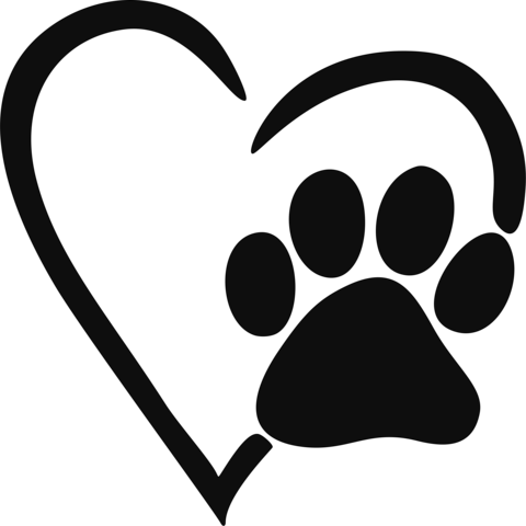 The image features a heart-shaped outline, with a larger heart placed above a smaller one. The outline of the larger heart is jagged and wavy, while the smaller heart is solid and curved. This artistic representation of the paw print is unusual, creating a visually intriguing scene.