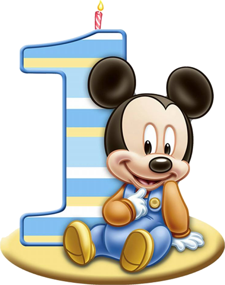 This image would be perfect for: * **First birthday announcements:** Use it on a birthday invitation, thank-you card, or social media post announcing the child’s first birthday. The Mickey Mouse adds a playful touch. * **Birthday party decorations:** The image could be incorporated into a digital or printed birthday banner, party invitations, or even printed onto small items like cupcake toppers. * **Scrapbooking or photo albums:** It’s a charming addition to a scrapbook page documenting the child’s first birthday. * **Greeting cards:** A cute, personalized greeting card for a friend or family member whose child is turning one. * **Website or blog post:** If you’re writing about first birthday party ideas or sharing memories of a first birthday, this image would be visually appealing and relevant.
