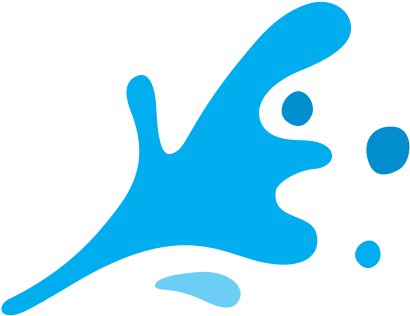 The image shows a blue water drop with “Water” written below it. The drop appears to be splattering or making a splash.